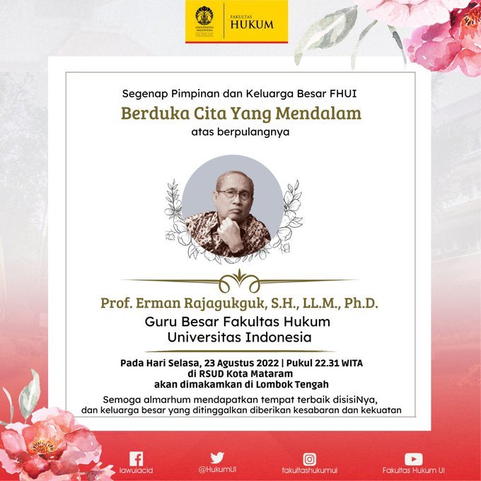 Ucapan Belasungkawa dari Fakultas Hukum UI atas meninggalnya Prof Erman Rajagukguk/Foto: Twitter