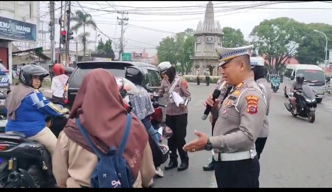 Payakumbuh, – Polres Payakumbuh melalui Satuan Lalu Lintas (Satlantas) menggelar kegiatan _”Public Address Polantas”_ dan penyuluhan langsung kepada pengendara kendaraan di Perempatan Jalan dan Simpang Lampu Merah, Tugu Adipura Kota Payakumbuh,Rabu pagi (15/10/2025).