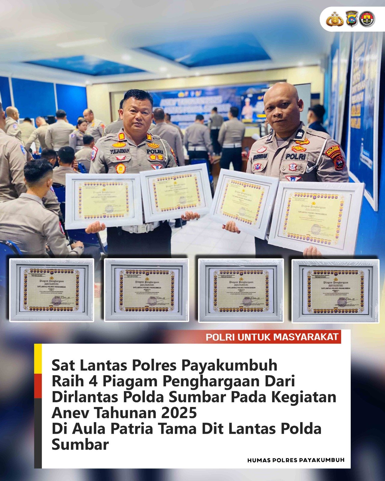 Adapun empat penghargaan yang diraih Sat Lantas Polres Payakumbuh sebagai berikut :