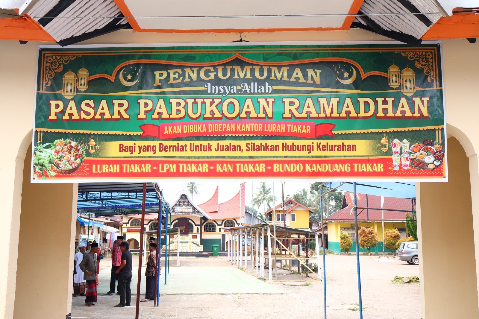 Pasar Pabukoan Tiakar direncanakan beroperasi sejak awal hingga akhir Ramadhan. Sejumlah pedagang menjajakan berbagai makanan khas dan minuman berbuka puasa untuk memenuhi kebutuhan masyarakat sekitar.