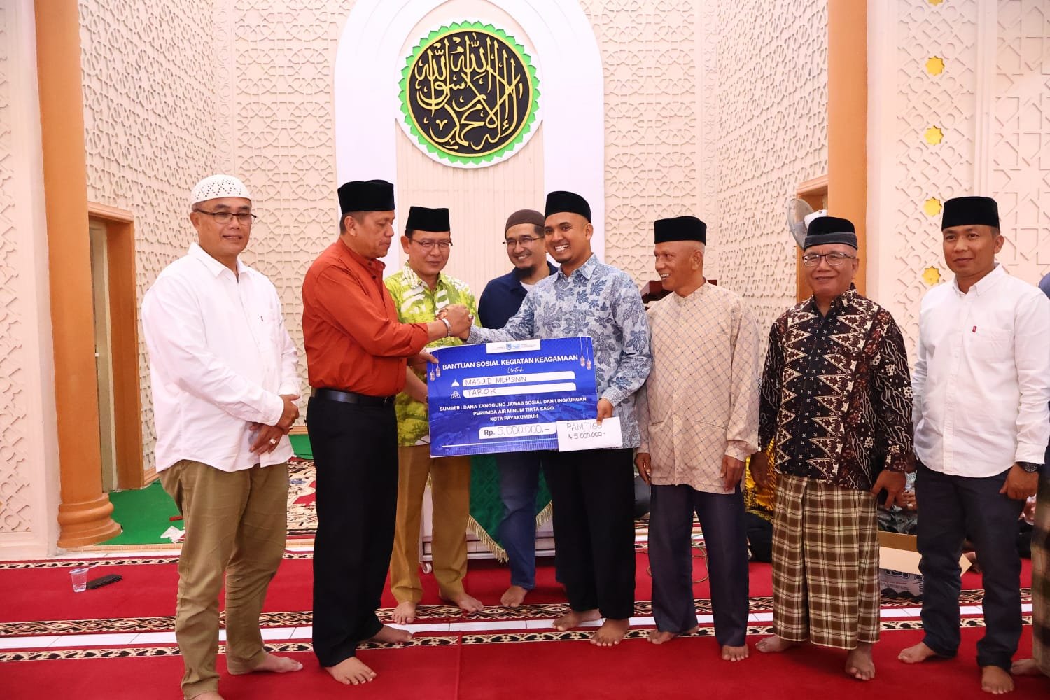 Pada kesempatan itu, Wali Kota menyerahkan bantuan Rp5 juta dari Bank Nagari dan Rp5 juta dari Perumda Tirta Sago untuk mendukung pembangunan masjid.