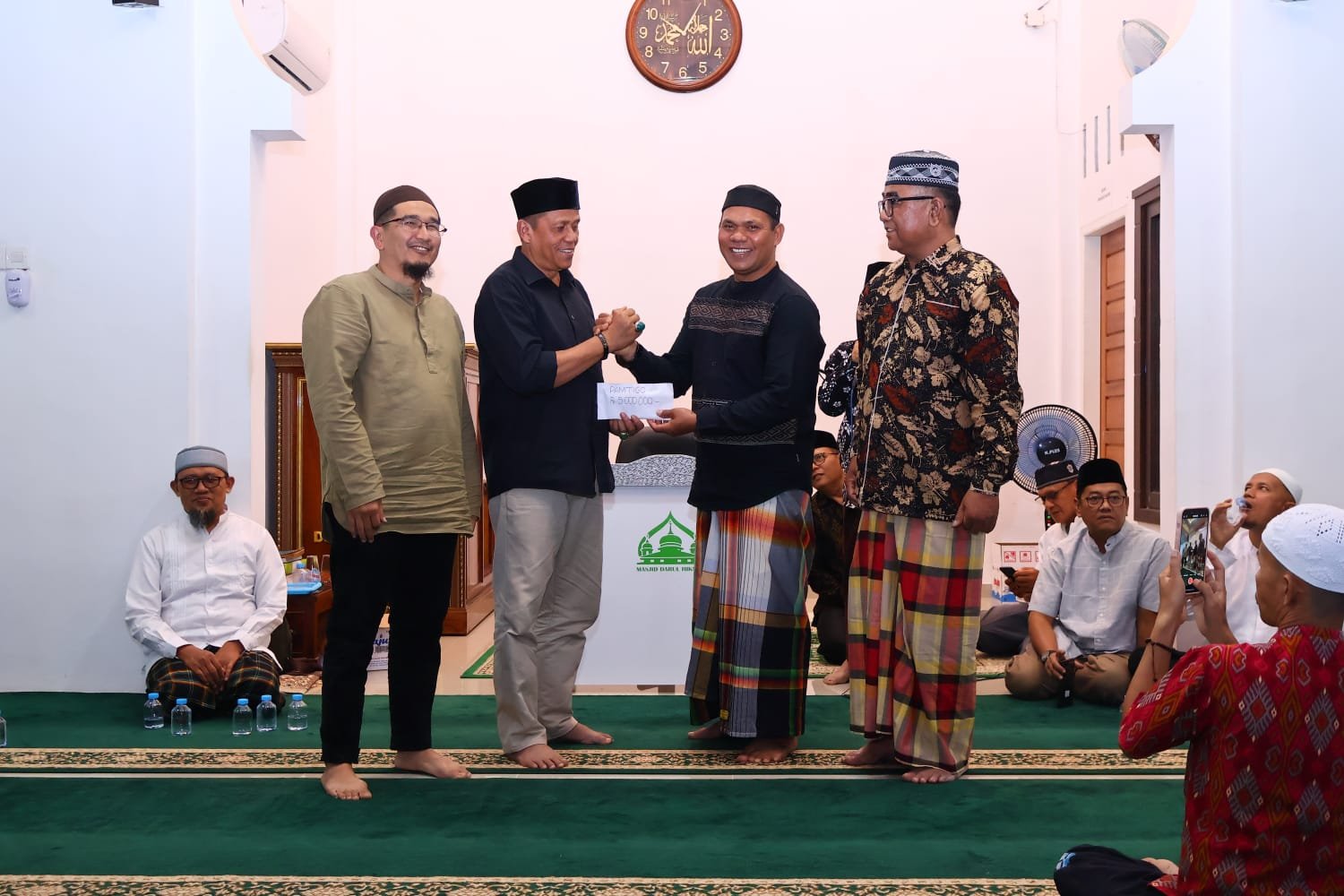 Dalam kunjungan tersebut, wali kota menyerahkan bantuan masing-masing Rp5 juta dari Bank Nagari dan Rp5 juta dari Perumda Tirta Sago untuk mendukung pembangunan masjid.