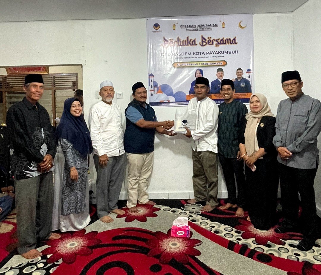 Payakumbuh— Tim Safari Ramadhan DPW NasDem Sumbar Kunjungi DPD NasDem Kota Payakumbuh. Kehadiran Wakil Ketua Pendidikan Politik sekaligus Kordinator Daerah Payakumbuh -Limapuluh Kota Yusuf disambut hangat oleh Ketua DPD Irmaizar dan pengurus partai diantaranya Hurisna Jamhur, Ainul Farhan J dan Febriadi. Kegiatan yang berlangsung di Kawasan Koto Nan Ompek , Kecamatan Payakumbuh Barat, Sabtu sore (7/3/2026), Membuat partai Restorasi tersebut tampak solid.
