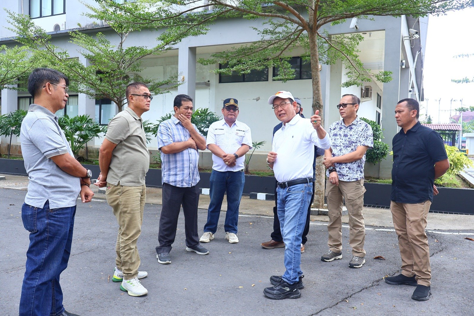 Zulmaeta turun langsung memantau kesiapan lapangan bersama jajaran. Ia melihat petugas kebersihan mulai menata taman dan merapikan lingkungan sekitar.