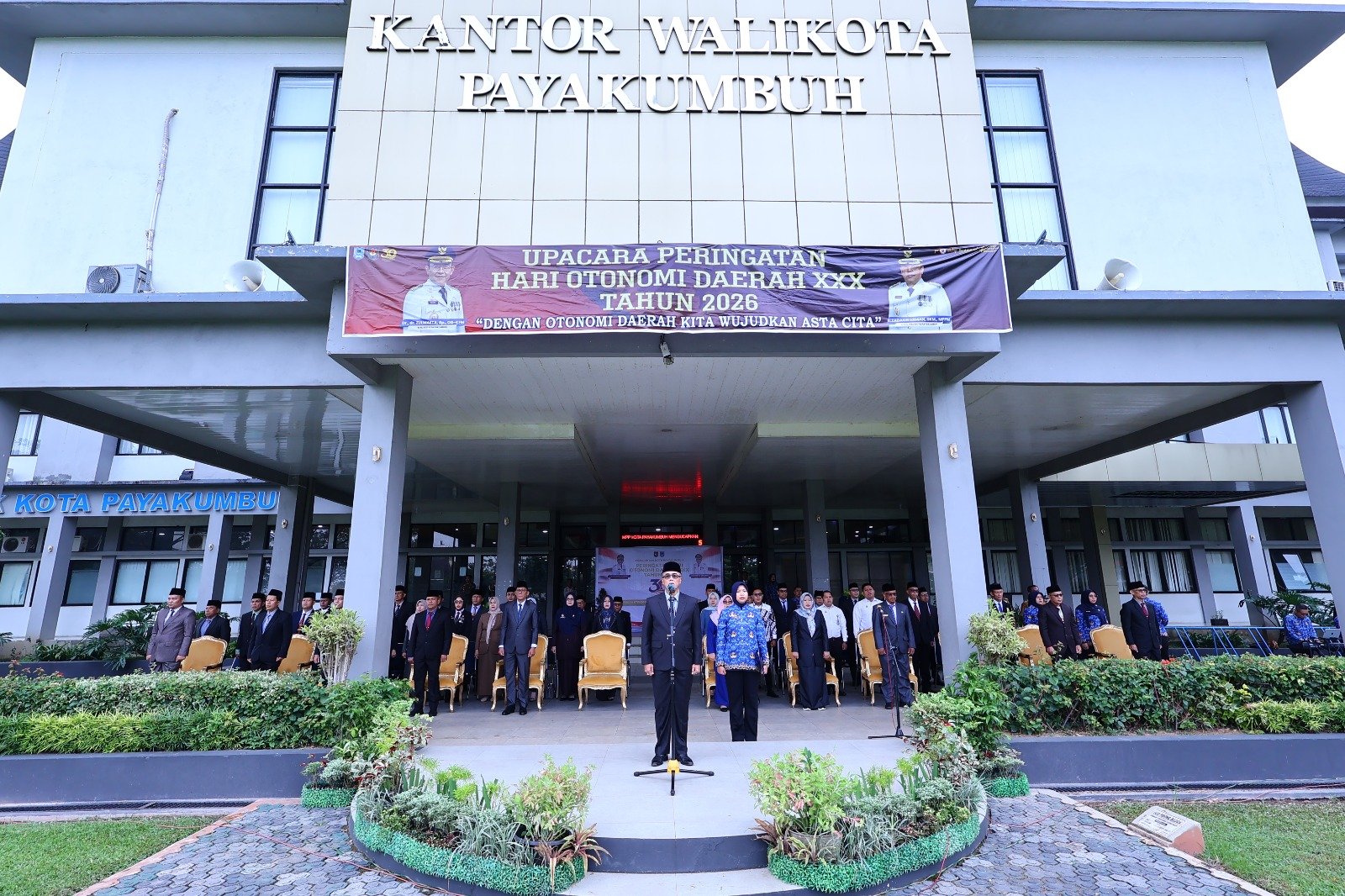 Payakumbuh — Pemko Payakumbuh menyoroti pentingnya sinergi antara pemerintah pusat dan daerah dalam mempercepat pembangunan dan meningkatkan pelayanan publik saat upacara peringatan Hari Otonomi Daerah ke-XXX Tahun 2026 di halaman Balai Kota Payakumbuh, Senin (27/04/2026).